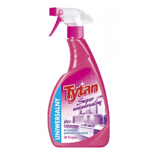 Płyn czyszczący Tytan super uniwersalny dzięki opracowaniu specjalnej receptury i zastosowaniu rozpylacza usuwa łatwo, szybko i skutecznie wszelkiego rodzaju zabrudzenia z powierzchni zmywalnych w całym domu. Teraz możesz mieć jeden środek, który poradzi sobie z wieloma zadaniami. Sprzątanie stanie się wygodniejsze, a w dalszym ciągu skuteczne.
