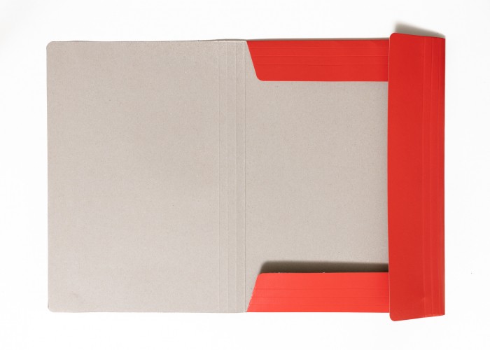 Teczka z gumką została wykonana z grubego makulaturowego kartonu 300 g/m2, jednostronnie barwionego i lakierowanego.