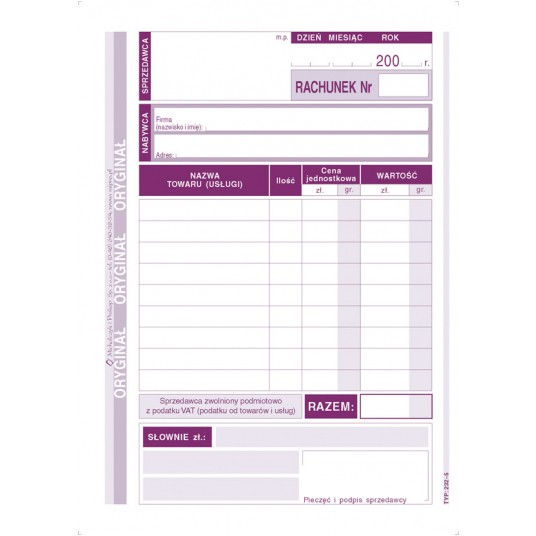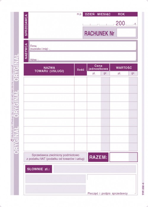 Druk RU A5 zwolniony z VAT 233-3 pionowy