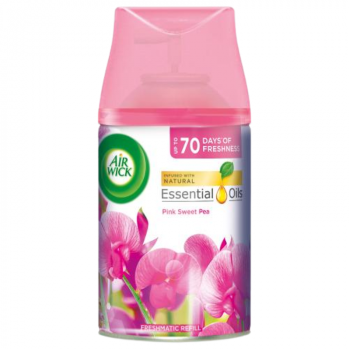 Wkład do odświeżacza powietrza Air Wick Freshmatic w zapachu Pink Sweet Pea to doskonały sposób na stworzenie przyjemnej atmosfery w Twoim domu. Jego delikatny i słodki zapach róży i groszku zapewni długotrwałe uczucie świeżości i czystości. Wkład działa automatycznie, uwalniając zapach w równomiernych interwałach, dzięki czemu Twój dom zawsze będzie pachnął pięknie i przyjemnie. Odświeżacz neutralizuje nieprzyjemne zapachy, pozostawiając za sobą subtelny aromat Pink Sweet Pea. Uzyskaj przyjemną atmosferę w swoim domu dzięki wkładowi do odświeżacza powietrza Air Wick Freshmatic w zapachu Pink Sweet Pea.