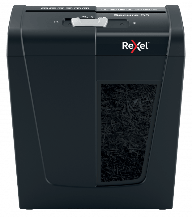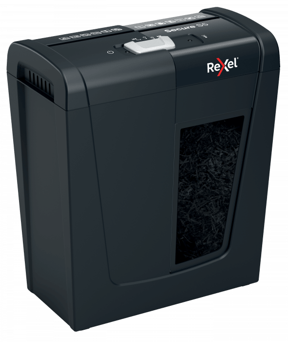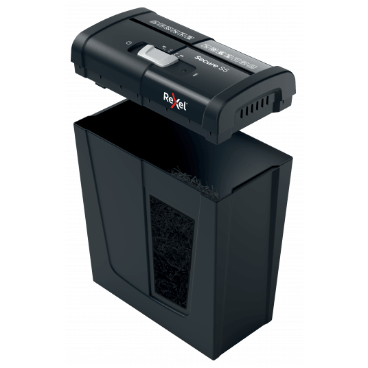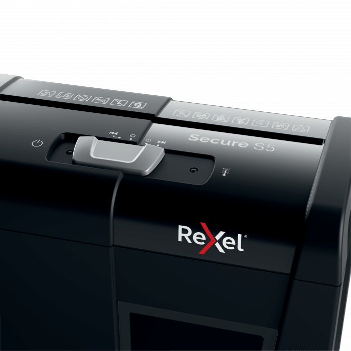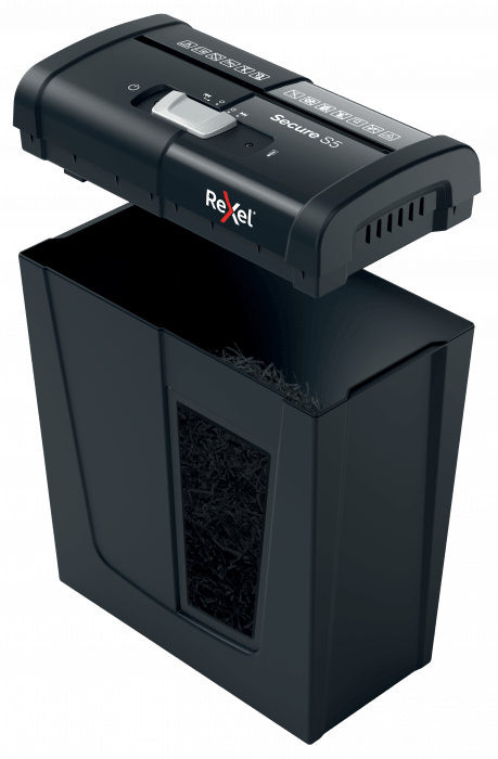 - model Secure S5 niszczy jednocześnie - po ręcznym podaniu przez szczelinę podajnika - do 5 arkuszy papieru A4 (80 gsm), tnąc je na paski o szerokości 6 mm, co zapewnia poziom bezpieczeństwa P-2