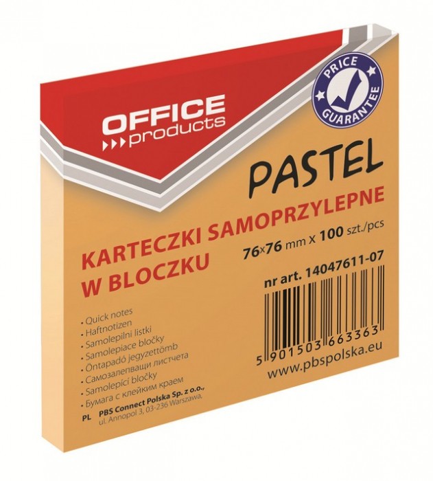 Notes SP 76x76 Office Product pomarańczowy pastel