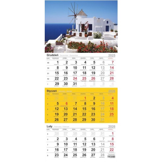 Główka pełnokolorowa, okienko przesuwane, nazwy miesięcy i tygodni w wersjach językowych.