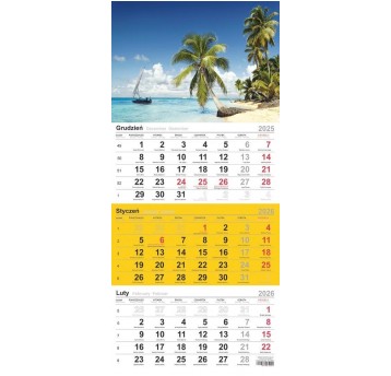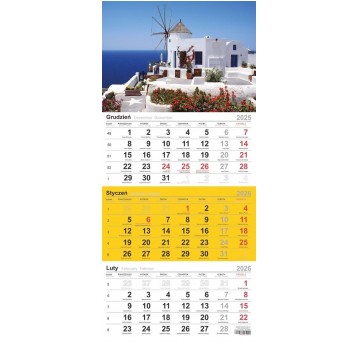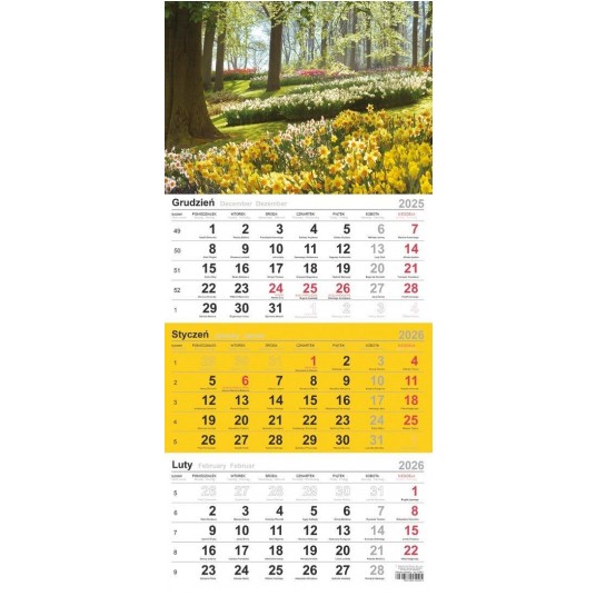 Główka pełnokolorowa, okienko przesuwane, nazwy miesięcy i tygodni w wersjach językowych.