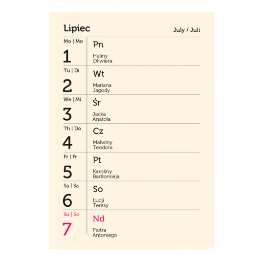 układ kalendarium: