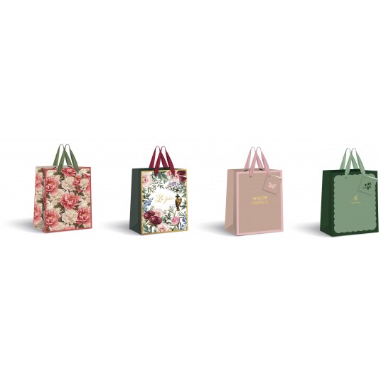 Wykonana z wysokiej jakości papieru 190 g. Eleganckie, matowe wykończenie. Wzmocniony, sztywny spód. Bilecik z miejscem na życzenia lub imię obdarowywanej osoby. Uchwyty wykonane z atłasowej wstążki. Idealna do szybkiego i efektywnego pakowania prezentów. Wymiar: 33x46x10 cm.