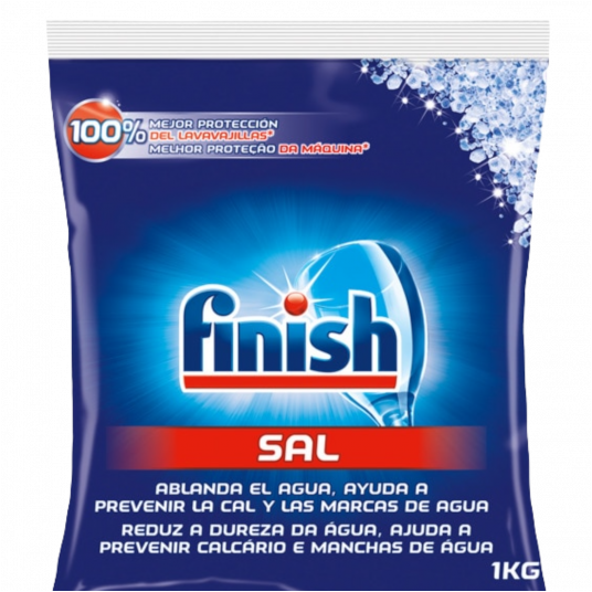 FINISH sól do zmywarek sprawia, że po zastosowaniu soli naczynia są bezwzględnie czyste, posiadają kryształowy połysk i blask. Stosowanie soli przy każdym zmywaniu chroni zmywarkę przed osadzaniem się kamienia. Środki zawarte w soli do zmywarek Finish zmiękczają wodę i chronią zmywarkę przed korozją. Waga 1KG