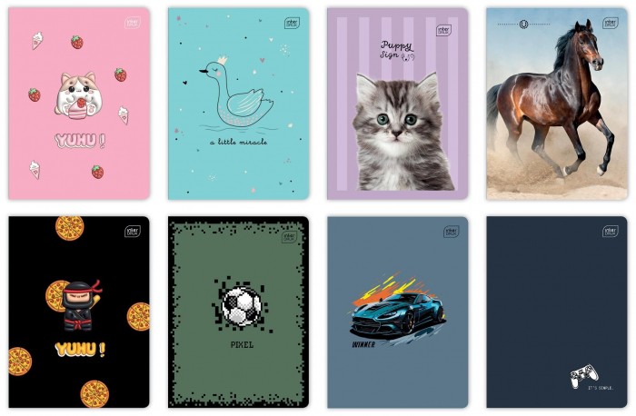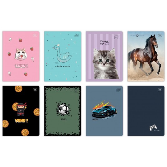 Format: A5. Liczba kartek: 16. Zadruk w kratkę. Zaokrąglone rogi. Okładka pokryta lakierem UV. Przydatne pomoce dydaktyczne na odwrocie zeszytu: ściąga z języka angielskiego i tabliczka mnożenia.