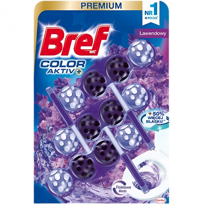 Z Bref WC Color Aktiv masz pewność czystości i świeżości nawet pomiędzy spłukaniami! Co więcej, Bref WC Color Aktiv i jego 4 kulki tworzą czyszczącą pianę przy każdym spłukaniu, zapewniają ochronę przed kamieniem, higienę i świeży zapach.