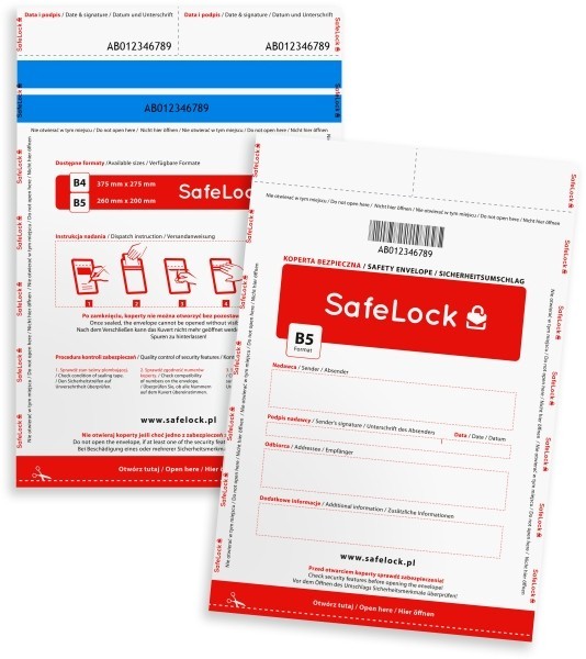 Koperty bezpieczne B5+ EMERSON DEPOSAFE z nadrukiem 100szt o wymiarach 200x255mm