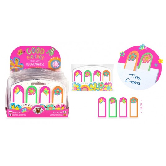karteczki samoprzylepne z eleganckim srebrnym nadrukiem na opakowaniu to praktyczny i dekoracyjny dodatek do szkoły, biura lub planera idealne do robienia notatek, organizowania i zaznaczania ważnych informacji zestaw zawiera 4 różne bloki karteczek samoprzylepnych po 30 arkuszy seria: Good Feelings-6 rozmiar pojedynczej karteczki: ok. 2,2 x 5,8 cm opakowanie z zawieszką kolor: mix kolorów Nazwa producenta: